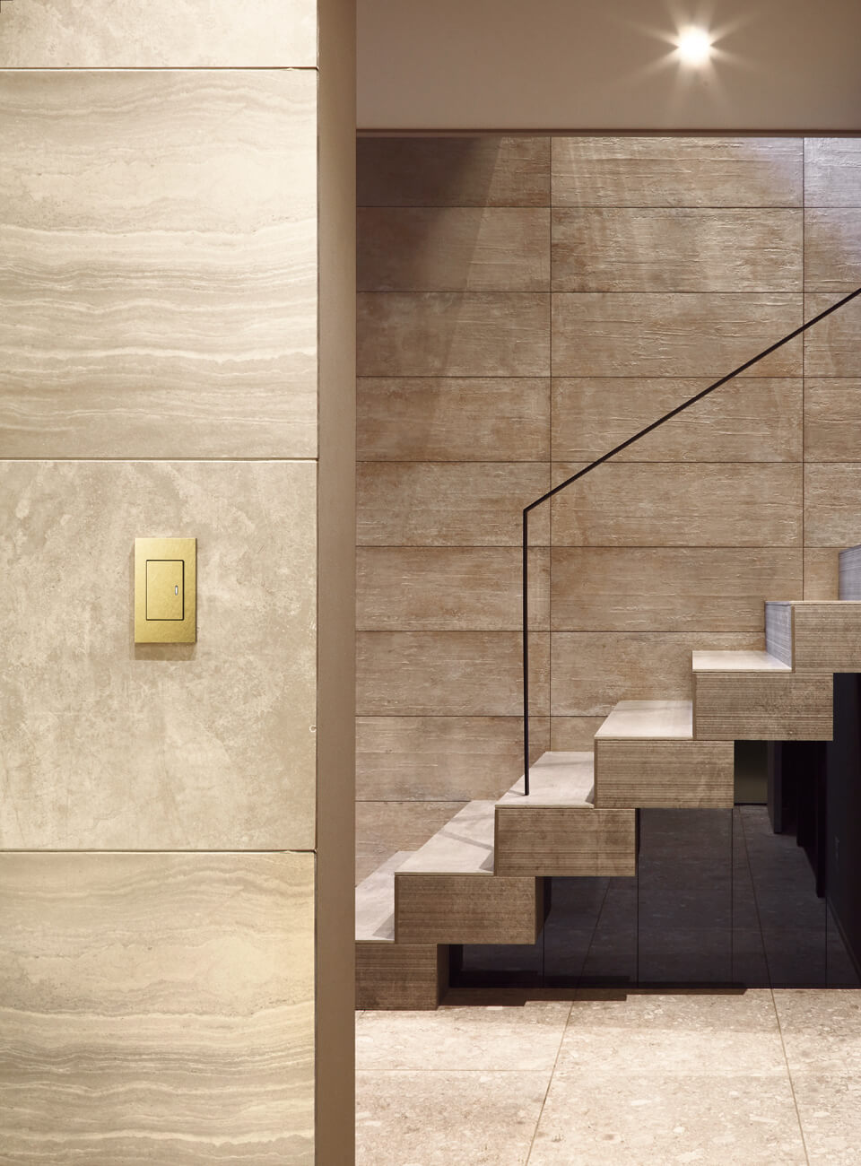 「EXTRA」は、ラグジュアリーな空間向けの配線器具用プレートハンドル。バイブレーション仕上げによって表面をランダムに研磨し、光の反射を抑え、味わい深い風合いを演出。美しいエッジを施すことで、無垢の金属板のような格別な質感を実現。「SO-STYLE」を始めとする他のモジュールと組み合わせも可能、という三つの大きな特徴を持っている。