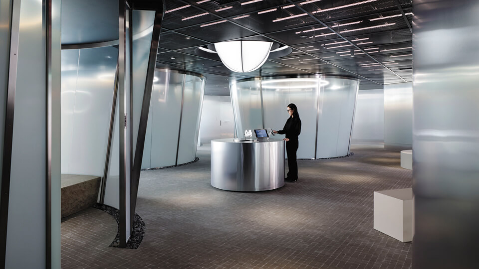 IT エンジニアに特化した人材派遣の会社Geekly のオフィス。採用候補者のためのミーティングエリアを重視し、未来を連想させるようなデザインを取り入れた