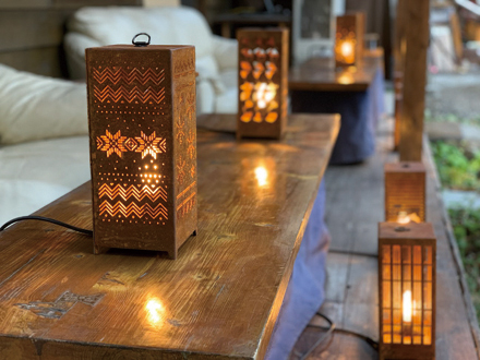 Moleシリーズ錆ランタンsquare エムテック https://mtec-co.com/Tel. 06-6195-8568 本物の保護性サビを持ったMoleシリーズの錆行燈。年月を経ることで保護性錆が形成されるコールテン鋼を使用。 ホテルや旅館の通路の照明に最適。屋外使用も可能で、アースカラーである鉄の錆色は植物の緑色と相性が良く庭園やガーデンにも採用されている。基本デザインは10種、サイズは2種を用意している。サイズや抜き絵柄など1点からのオリジナル製作にも対応可能。 資料請求する サイズ小w100×d100×h200、大w125×d125×h300 価格(税込)要問い合わせ RELATED PRODUCTS 資料請求リストに追加 LRMSK-T RIMiT sk 資料請求リストに追加 aromas モダンペンダントライト 資料請求リストに追加 黒地で空間に馴染むフレキシブル照明