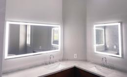 鏡照明輝 稲葉電機 http://www.e-inb.com/Tel. 0480-42-2741 ホテル客室や化粧室に対応可能なフレームなしタイプの「鏡照明輝」。完全オーダーメイドのため、写真のように左右で設置サイズが異なる場合なども自由に設計が可能。設置は製品内部にてビス固定し、落下リスクにも配慮した設計となっている。特許技術の照明構造により、ミラー正面からの発光でありながら光源が直接見えずグレアレスで目に優しい。製作は1台から対応する。オプションで高透過ミラータイプも用意。 資料請求する サイズ写真左 w1500×h855×d35、写真右 w750×h855×d35 RELATED PRODUCTS 資料請求リストに追加 鏡照明輝 資料請求リストに追加 鏡照明輝 資料請求リストに追加 鏡照明輝 資料請求リストに追加 鏡照明輝