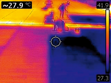 遮熱塗装サービス 田中機販 https://t-kihan.comTel. 042-705-1995 田中機販の遮熱塗装サービスは、近赤外線を反射し建築物の温度上昇を防ぐ。施工可能部位を選ばず、RC、金属屋根、スレート瓦を始め、コンクリート、舗装道路、外壁や手すり、遊具などにも有効。写真は金属屋根に施工した部位の温度測定したもの。右側の暗い部分が施工箇所で、通常なら60℃以上になる屋根が40℃以下に抑えられており、明確な温度の差異がわかる。塗料は10年以上の耐久があるものを使用しており、建築物の長寿命化や室内温度環境の維持に貢献する。 資料請求する RELATED PRODUCTS 資料請求リストに追加 クリスタ玉砂利洗い出し 資料請求リストに追加 クリスタ大玉砂利 ブラックタイプ 資料請求リストに追加 SOLUTION CORE