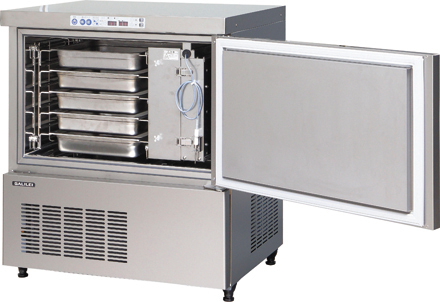 ホテルパン専用小型ブラストチラー フクシマガリレイ https://www.galilei.co.jp/Tel. 06-6477-2031 フクシマガリレイは、狭小厨房での急速凍結に適した、2/3ホテルパン専用の小型ブラストチラー100Vタイプを発売した。w750×d600×h850㎜のコンパクト設計で、スチームコンベクションオーブンの下にも設置でき、空間の有効活用と作業効率のアップに貢献。単相100V電源で最大-40℃の急速凍結ができ、扉を閉じた状態で庫内を温風乾燥できる機能も標準装備。冷媒ガス漏れリスクを最大限に抑えた設計で、冷媒ガス漏えいにおける冷却不良の修理を10年間保証。 資料請求する RELATED PRODUCTS 資料請求リストに追加 Inspiration 資料請求リストに追加 D01-601FM 資料請求リストに追加 アリアシェフプロ