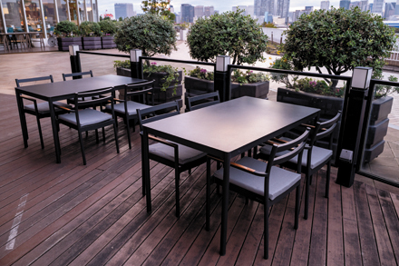 KAIS モーブル https://www.meuble.co.jp/Tel. 0944-88-1955 家具の産地、福岡県大川市にて家具製造を行うモーブル。同社の「KAIS」シリーズは屋外使用が可能な家具コレクション。フレームはアルミニウム製で、シートクッション中材には独自素材「LITEWAVE(ライトウェーブ)」を使用している。LITEWAVEはポリエチレンの繊維を三次元立体網状構造に成型したもので、高い透水性と耐久性を誇る。クッション内部に水分を溜めることがないので雨ざらしでも使用可能。クッションごと丸洗い可能でメンテナンス性が高いため、施設従業員の負担も大幅に軽減する。写真は東京・お台場にあるホテルのダイニングに導入された実例。 資料請求する RELATED PRODUCTS 資料請求リストに追加 KAIS 資料請求リストに追加 LITEWAVE 資料請求リストに追加 カイス カモメバースツール 資料請求リストに追加 KAIS 資料請求リストに追加 KAIS ラウンジチェア 資料請求リストに追加 カイス カモメバースツール 資料請求リストに追加 KAMOME STOOL